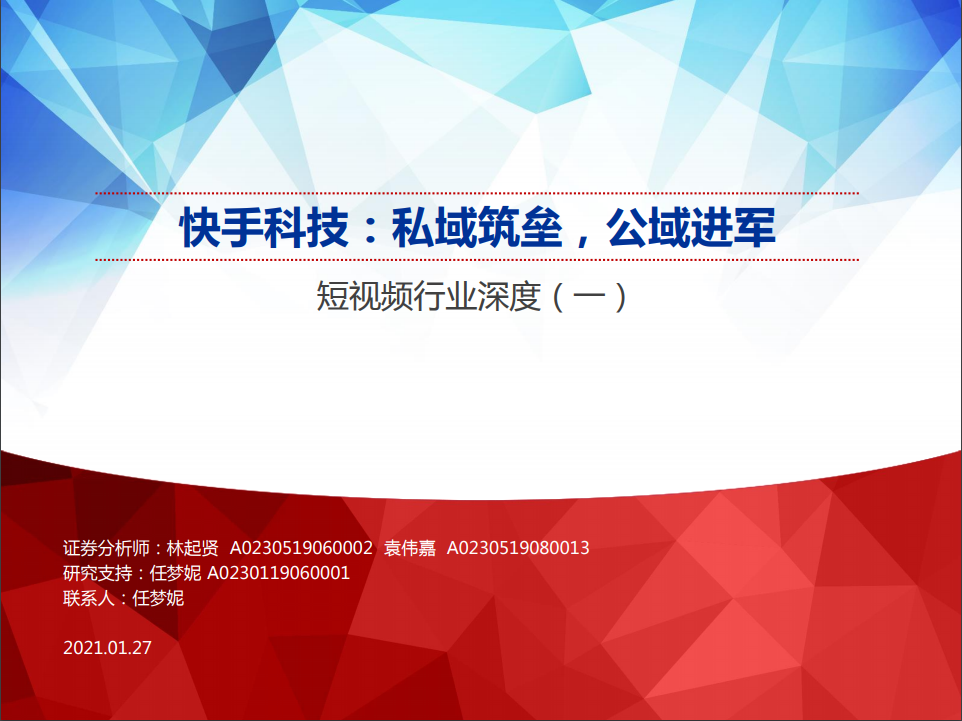 本文主要是介绍短视频行业深度(一)快手科技:私域筑垒,公域进军.PDF,希望对大家解决编程问题提供一定的参考价值,需要的开发者们随着小编来一起学习吧!