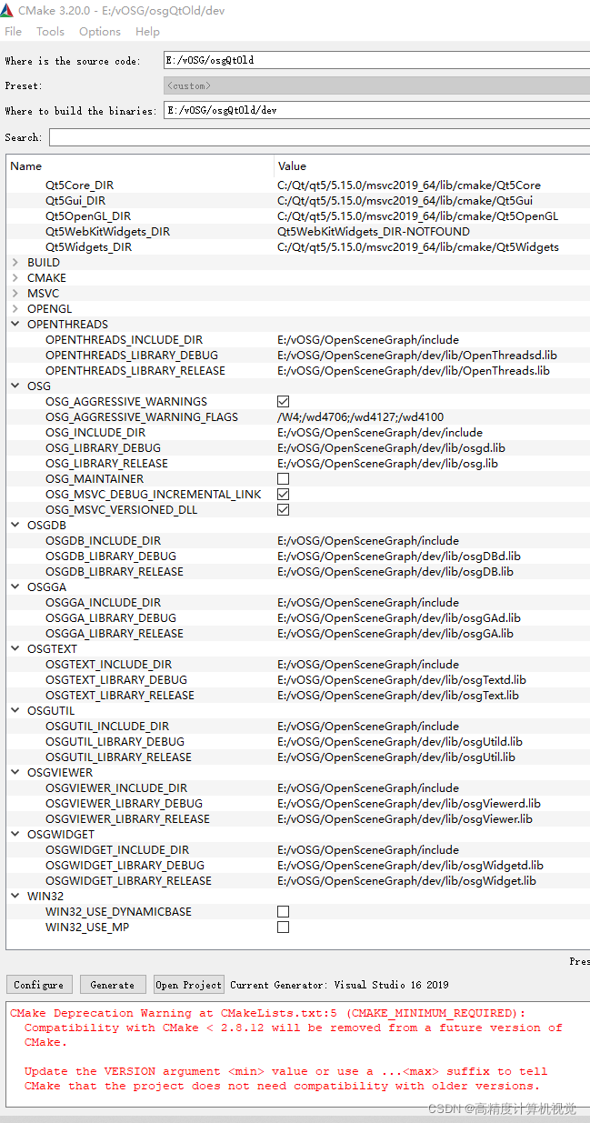 (1)cmake-gui报错:Could NOT find OpenSceneGraph: Found unsuitable version "..", but required
