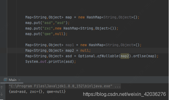 如果有值则返回该值,否则返回它的参数值。途中的map2是null所以返回的是map的值。至于为啥我会写一个map1 大家可以去试试