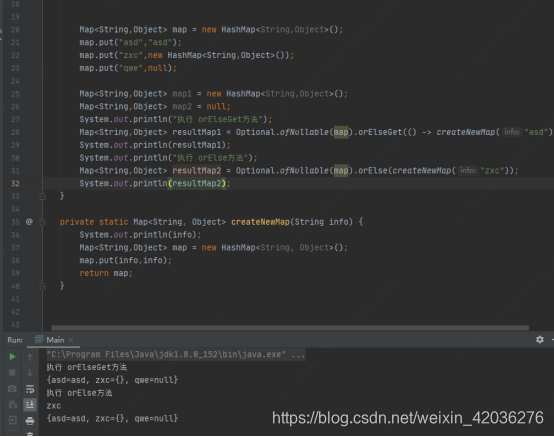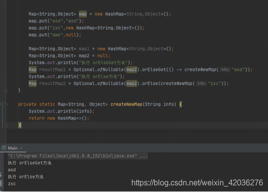 orElse()方法依旧执行了createNewMap()的方法,但是orElseGet()却没有。所以他们两者之间还是有一定的区别的。