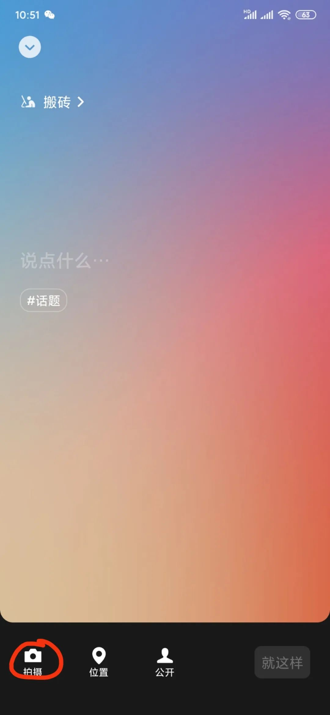3、点击左下角拍摄按钮,从相册中导入视频,然后再编辑一句和状态相关的话就搞定了。