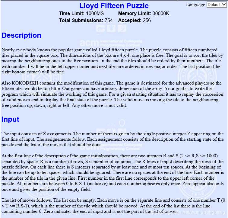 本文主要是介绍POJ 1998 Lloyd Fifteen Puzzle G++ 模拟 巧妙,希望对大家解决编程问题提供一定的参考价值,需要的开发者们随着小编来一起学习吧!