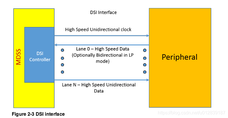 The DSI controller includes one high-speed clock lane and one or more data lanes. Each lane