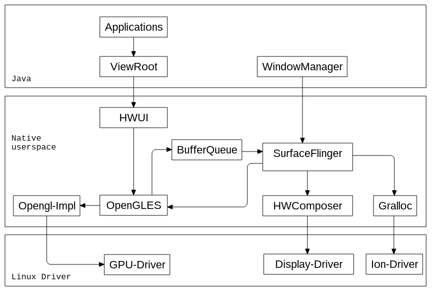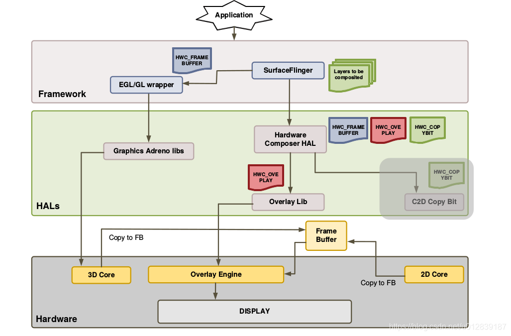 HWC2是 SurfaceFlinger 用来与专门的窗口合成硬件进行通信。SurfaceFlinger 包含使用 3D 图形处理器 (GPU) 执行窗口合成任务的备用路径,但由于以下几个原因,此路径并不理想: