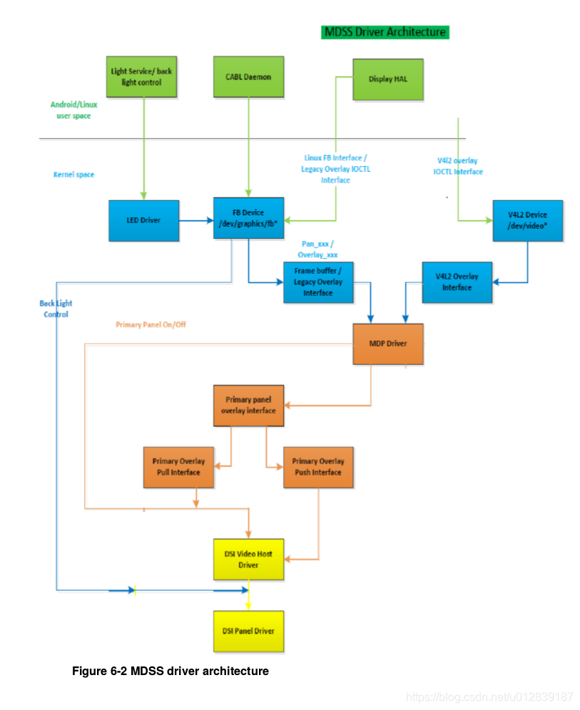 MDSS driver – kernel\drivers\video\msm\mdssSource surface process– mdss_mdp_overlay.c– mdss_mdp_pipe.cLayer Mixermdss_mdp_ctl.cDestination Surface Processor (DSP)mdss_mdp_intf_cmd.cmdss_mdp_intf_video.cmdss_mdp_intf_writeback.cmdss_mdp_rotatorDisplay peripheral interfacemdss_dsi.cmdss_dsi_host.c