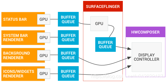 - 每次 SurfaceFlinger 使用 GPU 进行合成时,应用都无法使用处理器进行自我渲染,因此应尽可能使用专门的硬件而不是 GPU 进行合成.