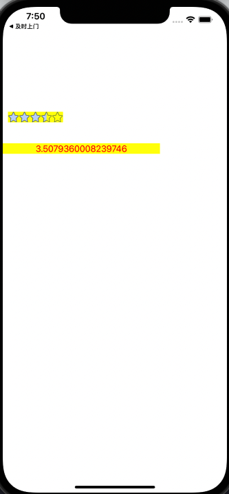 //import UIKitclass ViewController: UIViewController {let width: Int = 30 // 星星的宽、高private lazy var starRatingView: SHStarRatingView = {let temp = SHStarRatingView(frame: CGRect(x: 10, y: 200, width: width * 5 + 5 , height: width))temp.setBottomImageName("icon_star_gray", topIconStr: "icon_star_yellow", starCount: 5)temp.allowIncompleteStar = true // 是否允许, 整颗星temp.allowAnimation = true // 动画temp.allowProhibitManuallyStar = false // 禁止手动评分temp.scorePercent = 3.6 / 5 // 默认评分 (0 - 1)temp.delegate = selftemp.backgroundColor = .yellowreturn temp}()lazy var nuberLabel: UILabel = { // 评分数值let temp: UILabel = UILabel(frame: CGRect(x: 0, y: 260, width: 300, height: 20))temp.text = "3.60"temp.textAlignment = .centertemp.textColor = .redtemp.backgroundColor = .yellowreturn temp}()override func viewDidLoad() {super.viewDidLoad()self.view.addSubview(self.starRatingView) //添加....五角星...self.view.addSubview(self.nuberLabel) //添加....五角星数值...}}// MARK: - Private methodextension ViewController: SHStarRatingViewDelegate {func starRateView(_ starRateView: SHStarRatingView, currentScorePercent: CGFloat) {print("newScorePercent======\(currentScorePercent * 5)")self.nuberLabel.text = "\(currentScorePercent * 5)"}}