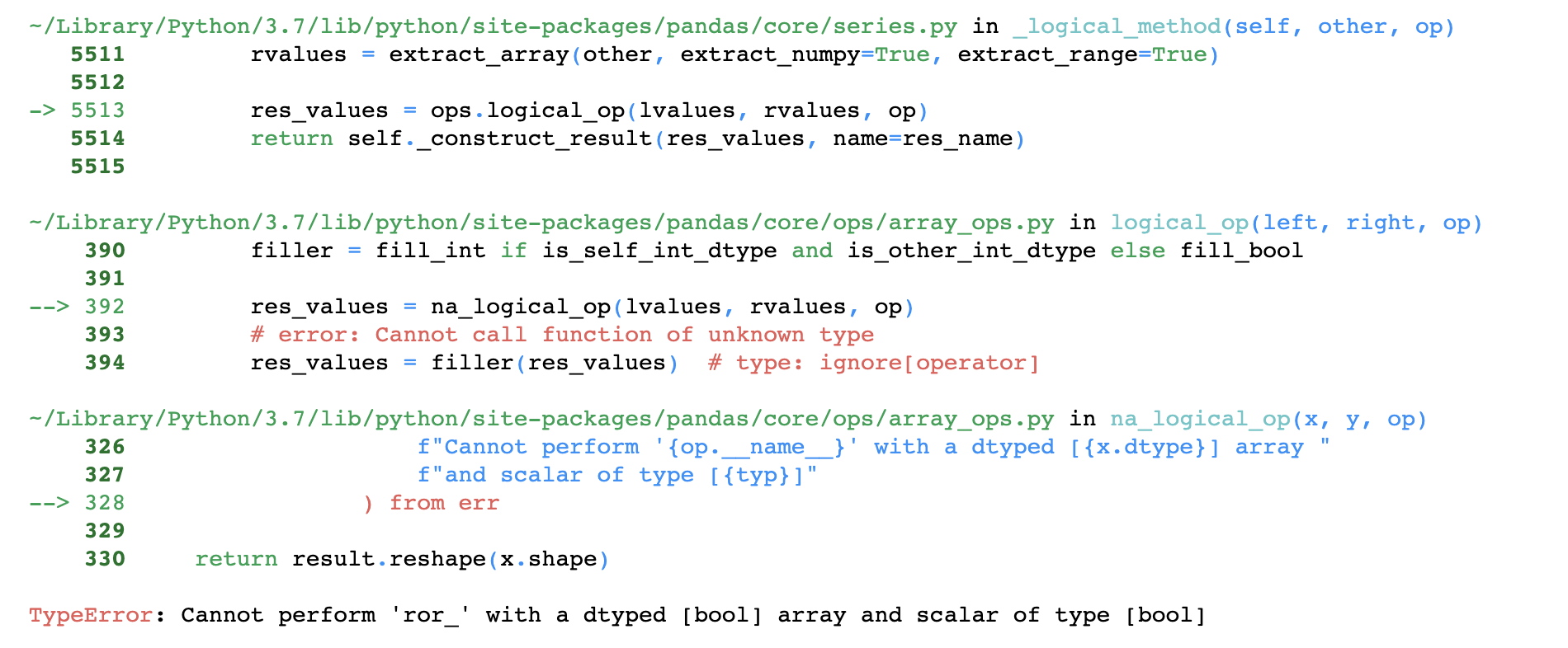 本文主要是介绍令人不悦的Error-TypeError: Cannot perform ‘ror_‘ with a dtyped [float64] array and scalar of type [bool],希望对大家解决编程问题提供一定的参考价值,需要的开发者们随着小编来一起学习吧!