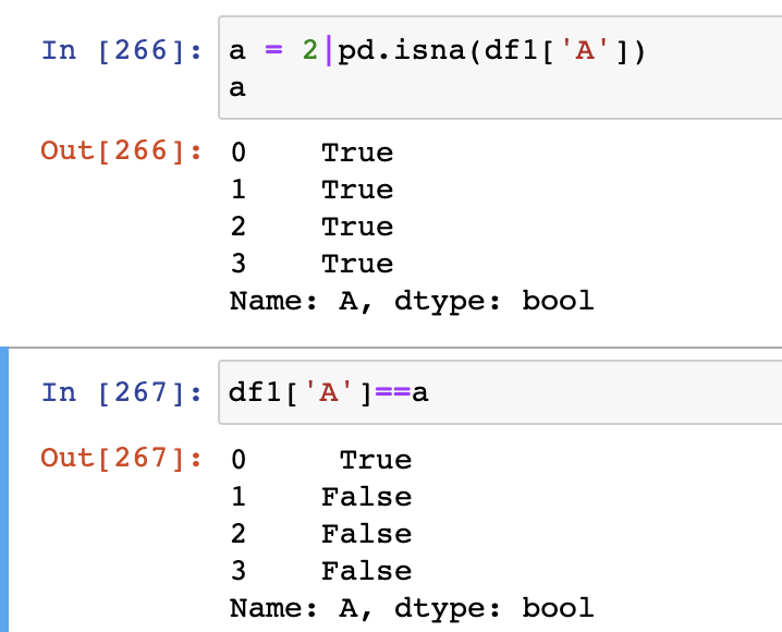 这是因为数值类型是可以直接和bool类型数据进行运算,所以没有报错;结果出错是因为按运算符优先级,先进行2 | pd.isna(df1['A']),得出来的都是true(2是一个确定的数,在bool类型为true,true和数值进行比较会转变成1),然后和df1[‘A’]进行==运算,会发现只有第一行的1是满足的(1==ture),所以最后会删除第一行。