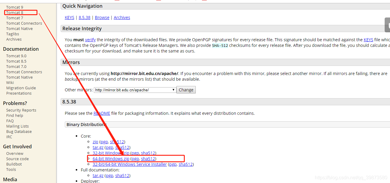 一,进入https://tomcat.apache.org/download-80.cgi页面,进行下载tomcat 8,