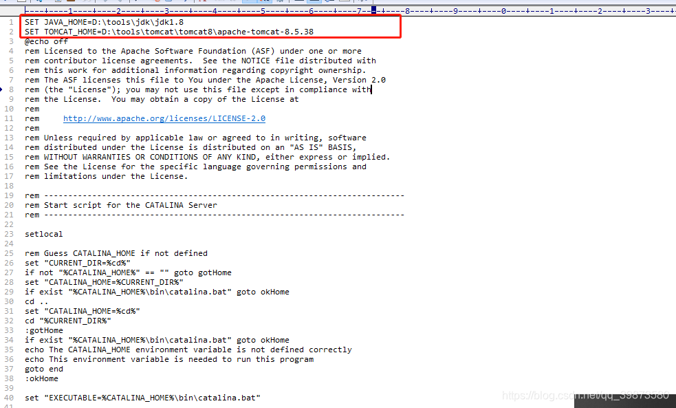 SET TOMCAT_HOME=D:\tools\tomcat\tomcat8\apache-tomcat-8.5.38(tomcat 的安装路径)