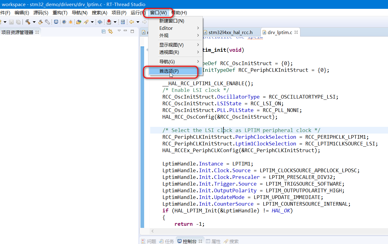 打开RT-Thread Studio,【窗口】 --- 【首选项】