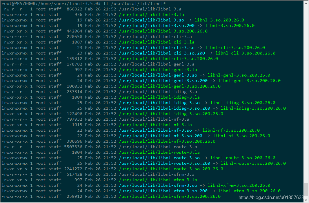 经过上述操作,libnl安装完毕,安装目标在/usr/local/lib中