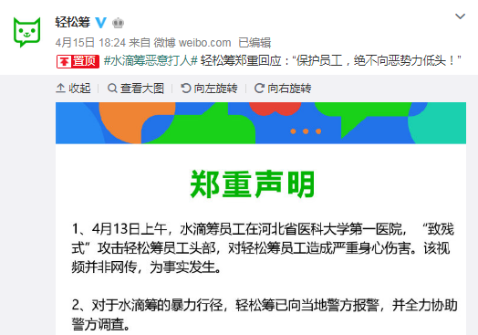 事情闹大了,水滴筹和轻松筹都作出回应。