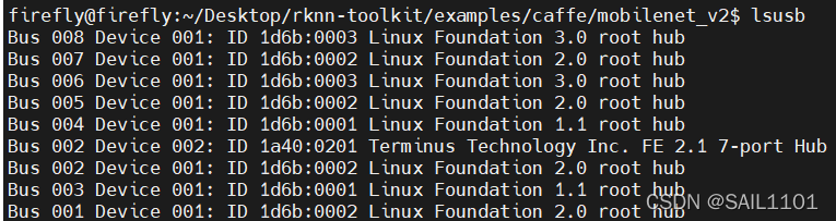 npu是以usb设备存在,lsusb查看usb设备,此时没有npu信息。