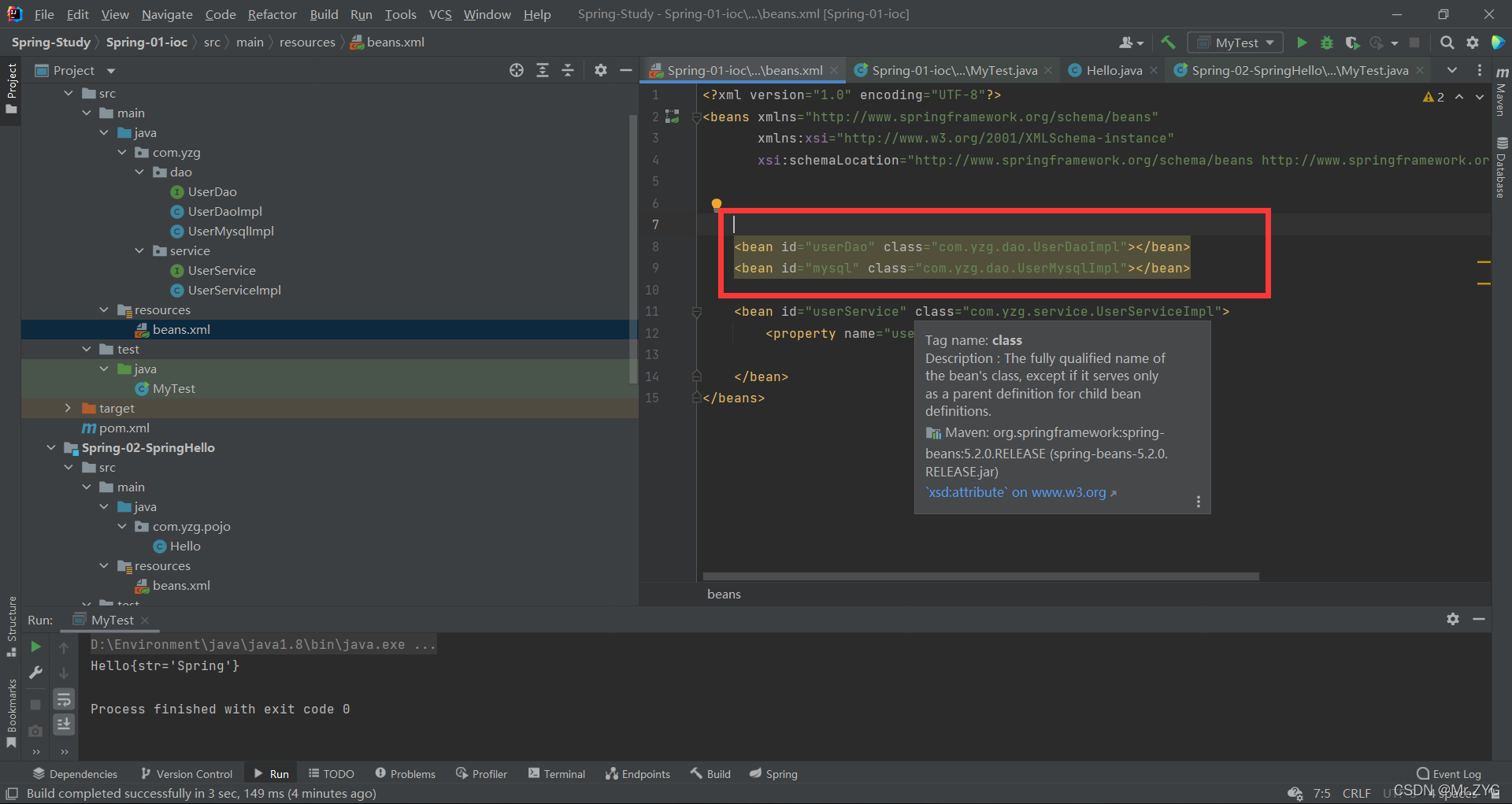 下图 配置<bean>进入spring托管。相当于前面的 实例化两个接口对象