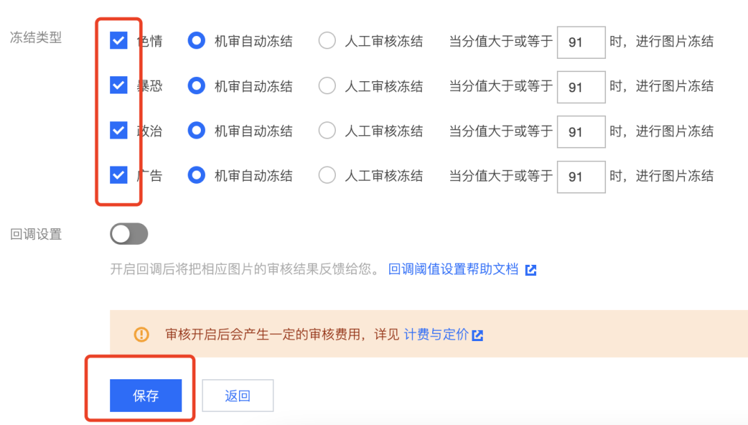 为了方便大家的使用,降低内容审核的接入门槛,对象存储原生的内容审核服务提供了存储、识别、打击、复审一系列的流程。只需要在对象存储控制台上,进行简单的配置,即可完成一整套的内容审核服务。