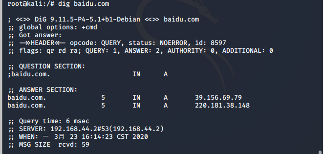 Dig(domain information gropher,域名信息查询工具),会使用操作系统默认的DNS查询。