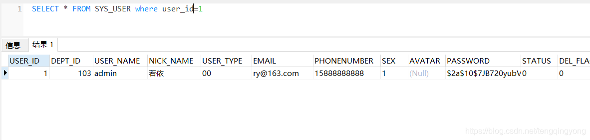 1 insert into dectuser(name,sex) values ('feng','男); 2 commit; /*提交*/