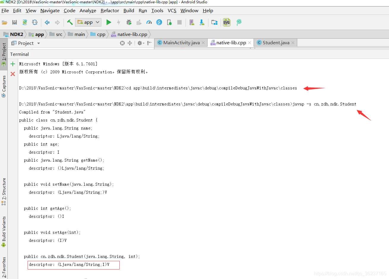 在jni开发中获取 jmetodID 需要函数签名,今天记录使用AS命令生成签名