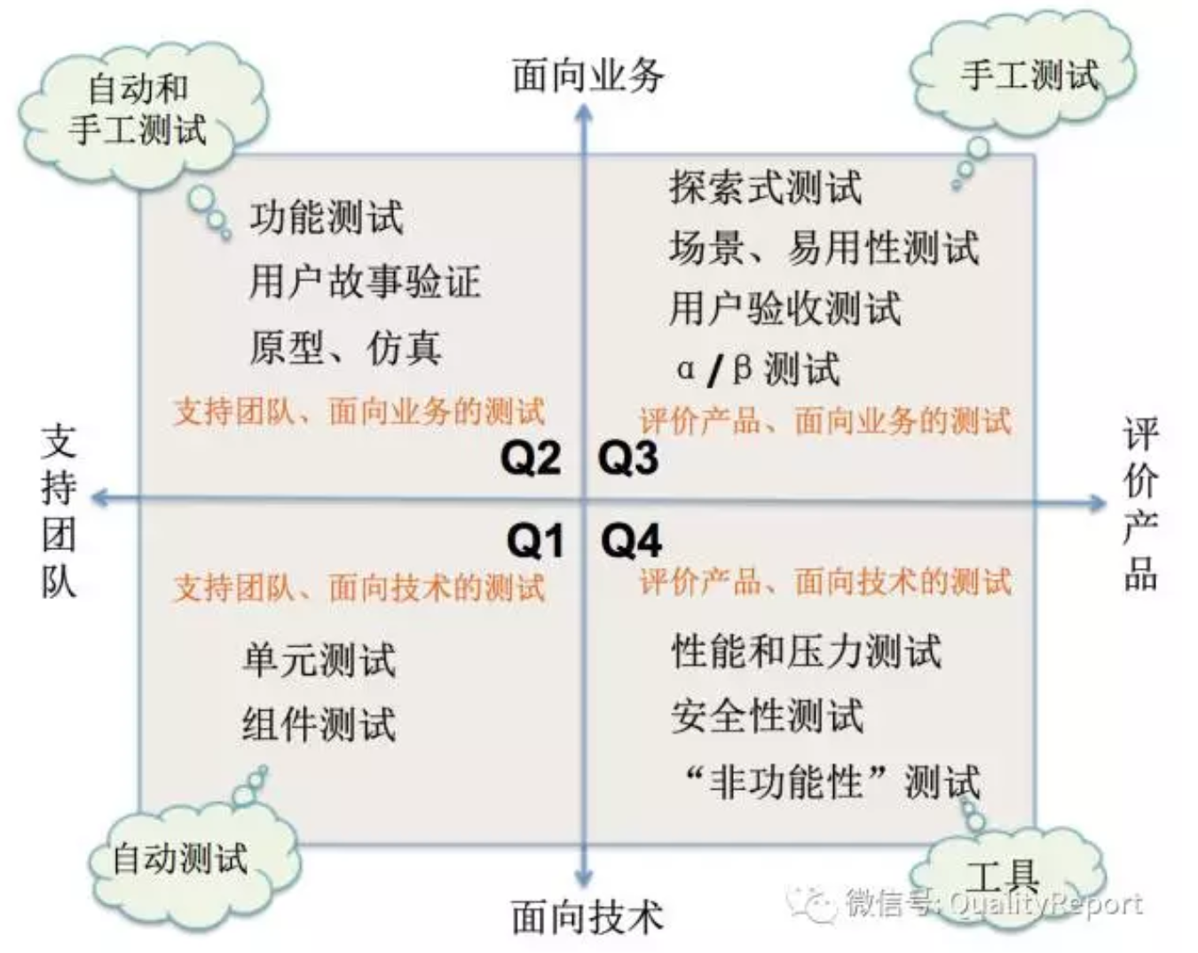 Q3: 面向业务的评价产品质量,探索式测试,配合SBTM、众测。传统测试也会做易用性测试、用户验收测试,不是敏捷测试的特点。