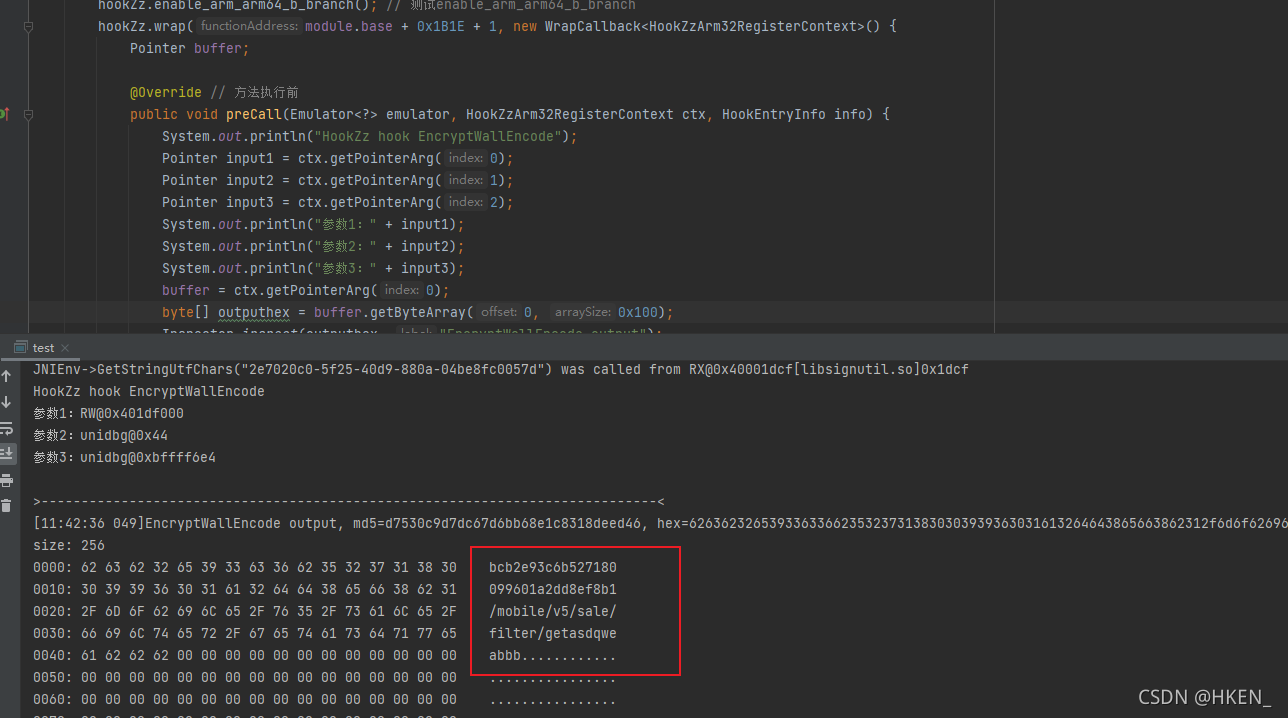 虽然不知道是不是正常的md5算法,那就直接 用unidbg hook,先来hook一下传入参数