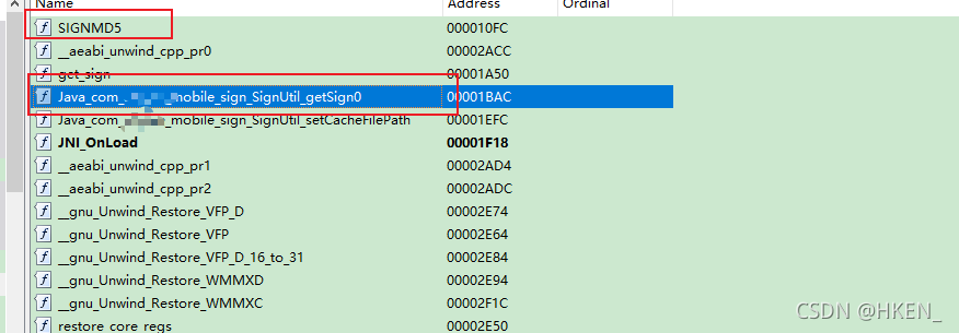 因为这个算法不是动态注册的,所以可以直接在导出表中找到,这里不仅找到了这个函数,还找到了一个signmd5,他很可疑,继续向下看。
