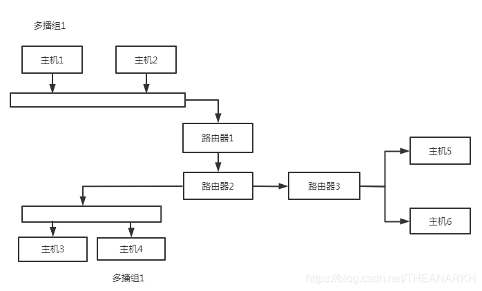 IGMP是组成员管理协议,我们知道一般的通信是单播的,虽然主机发出的单播报文,局域网中的每个主机都会收到,但是默认情况下,主机只会处理目的ip是自己的报文。如果我想让多个主机都可以处理我发出的报文怎么办呢?这就是IGMP做的事情。他定义了组的概念,我们可以使用多播的方式,给一个组发送报文,属于这个组的主机都可以处理这个报文。下面我们看看多播是怎么实现的。首先我们看一下网络架构。