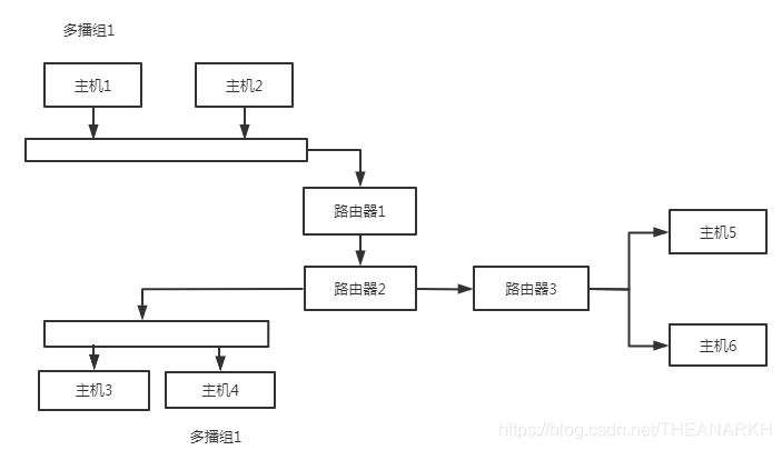 udp支持多播,tcp则不支持,因为tcp是基于连接和可靠的,多播则会带来过多的连接和流量。多播分为局域网多播和广域网多播,我们知道在局域网内发生一个数据,是会以广播的形式发送到各个主机的,主机根据目的地址判断是否需要处理该数据包。如果udp是单播的模式,则只会有一个主机会处理该数据包。如果udp是多播的模式,则有多个主机处理该数据包。多播的时候,存在一个多播组的概念,只有加入这个组的主机才能处理该组的数据包。假设有以下局域网