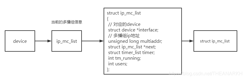 拿到加入的多播组ip和device后,调用ip_mc_join_group,在socket结构体中,有一个字段维护了该socket加入的多播组信息。