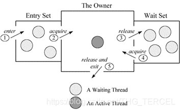 一个 Monitor在某个时刻,只能被一个线程拥有,该线程就是 “Active Thread”,而其它线程为“Waiting Thread”,分别在两个队列 “ Entry Set”和 “Wait Set”里面等候。在 “Entry Set”中等待的线程状态是 “Waiting for monitor entry”,而在“Wait Set”中等待的线程状态是 “in Object.wait()”。 被 synchronized保护起来的代码段称为临界区,当一个线程申请进入临界区时,它就进入了 “Entry Set”队列。