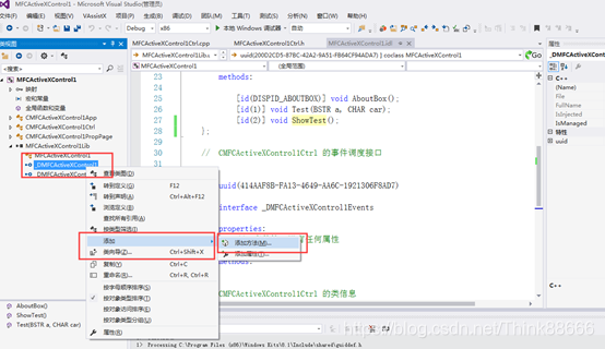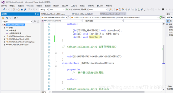 1、新建ActiveX项目,一路默认下来,在 视图->类视图 下的目录结构是这样的: