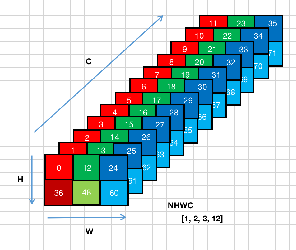 - 原Channel的选择顺序:NHWC格式已经选择了Channel了,接下来当然就是Width方向了,然后是Height方向。