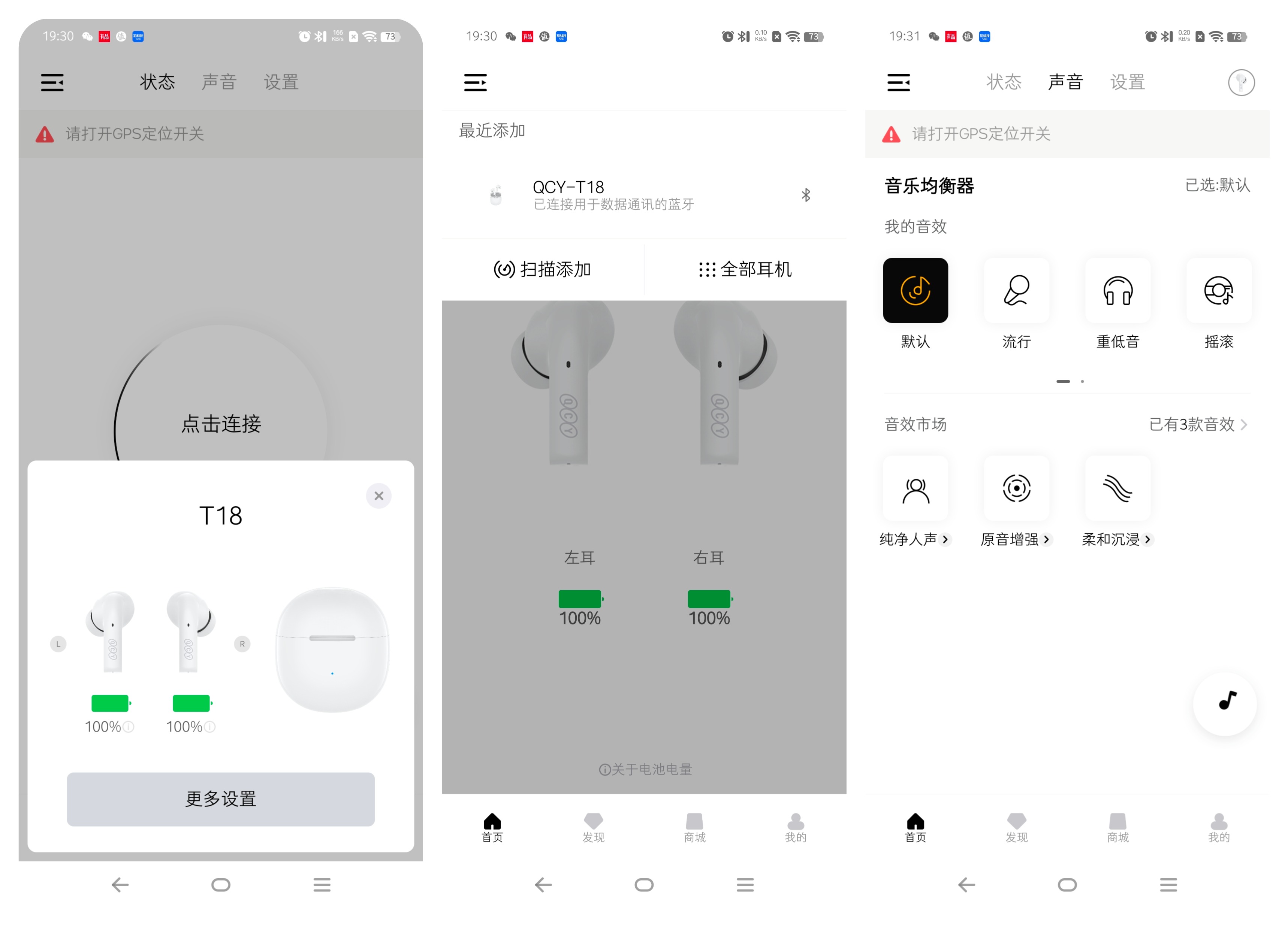 在音质表现上,QCY T18所搭载的高通3050芯片是目前相对较新的配置,在功耗、延迟、抗干扰等方面的表现都很好,并且通过QCY APP,我们还能够根据自己的听歌喜好进行调整,从而获得更加好听的音色。另外,这款耳机因为采用了10mm动圈单元,所以本身也有相对较好的音质潜力,默认均衡的三频表现,同样给后期自定义提供了足够的空间。