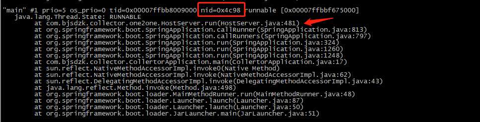pid19608的线程占用cpu过大 printf "%x\n" 19608(线程pid) 将线程转成16进制,用jstack pid查看线程