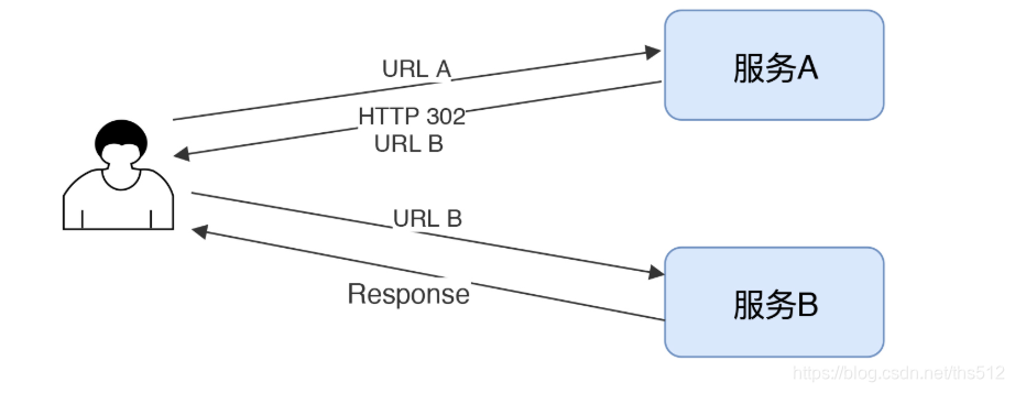 用户发了个URL A到服务A上,服务A返回了HTTP代码302和URL B。 这时用户看到了接着访问URL B,得到了服务B的响应。对于JMeter来说,它可以处理这种重定向。
