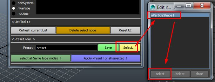 以前开发的用于快速选择和管理N动力学中的各种动力学节点的工具。当特效元素一点点多起来时,就会发现快速查看、选择场景中同类的动力学节点,变得越来越麻烦,更别说批量修改同类型的节点属性了,因为很多动力学节点是无法手动快速选择的,于是诞生了本套工具。应用户要求,增加了合并nucleus和hairSystem工具,合并动力学多余结算器,做特效的同学可以拥有,你快乐就是我快乐。南无阿弥陀佛。