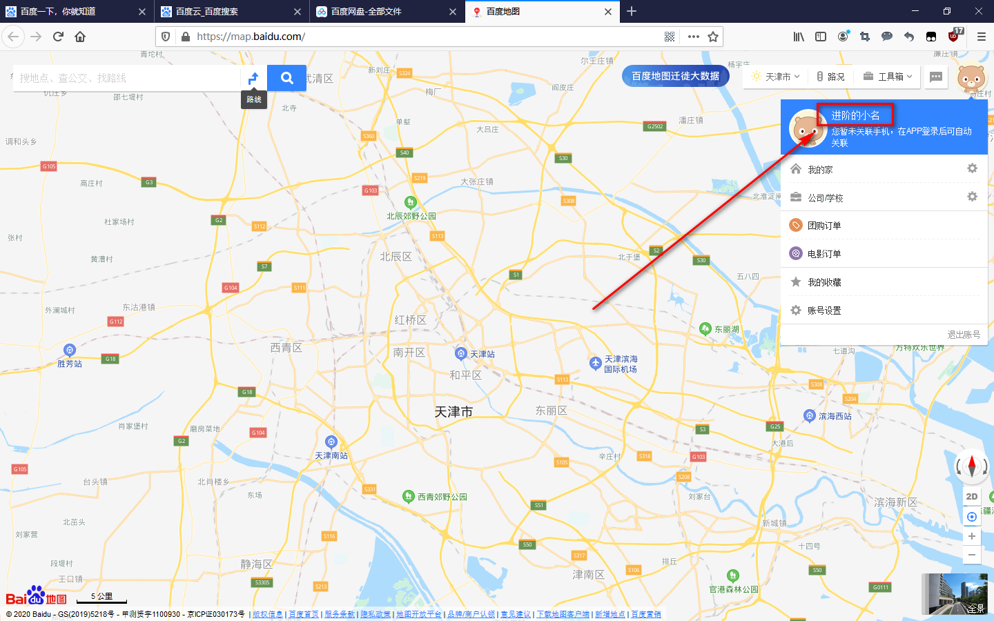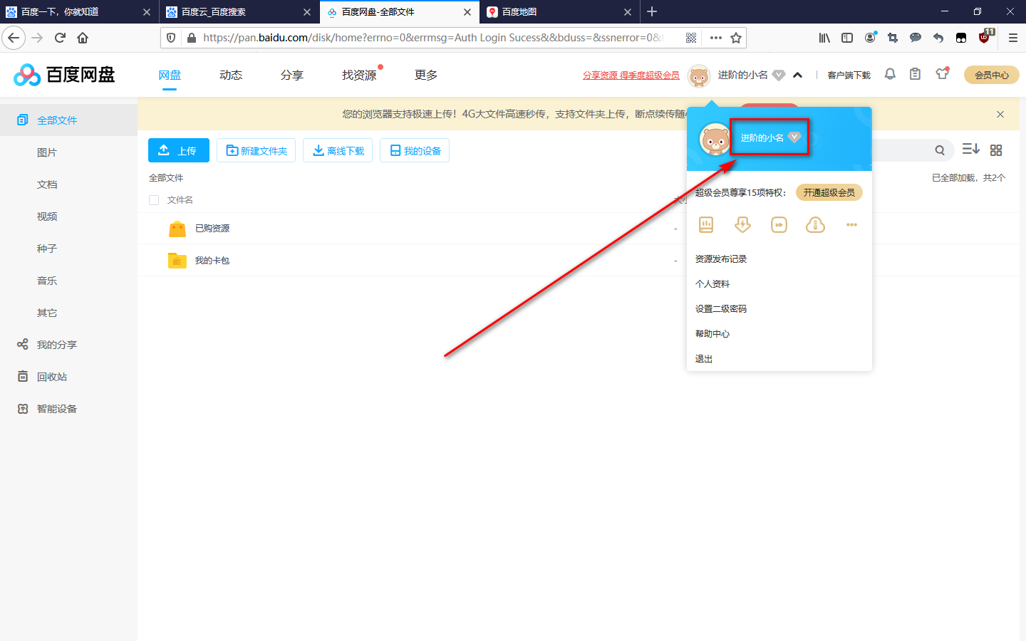 在登录这个“进阶的小名”账号的情况下,分别打开百度网盘和百度地图的效果: