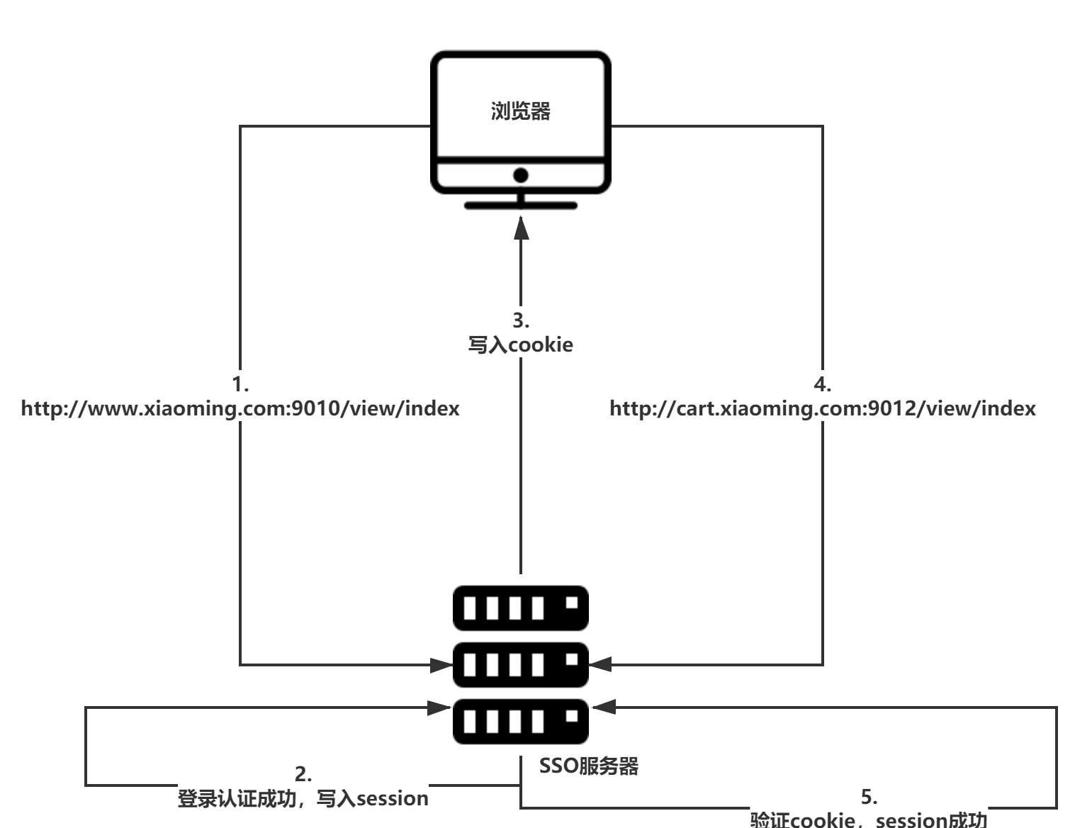 - 比如两个产品的地址分别为 http://www.xiaoming.com 和 http://cart.xiaoming.com,那么 cookie 的域设置为 xiaoming.com 即可。在访问两个资源的时候,这个 cookie 都能发送到服务器,本质上和同域 SSO 没有区别。