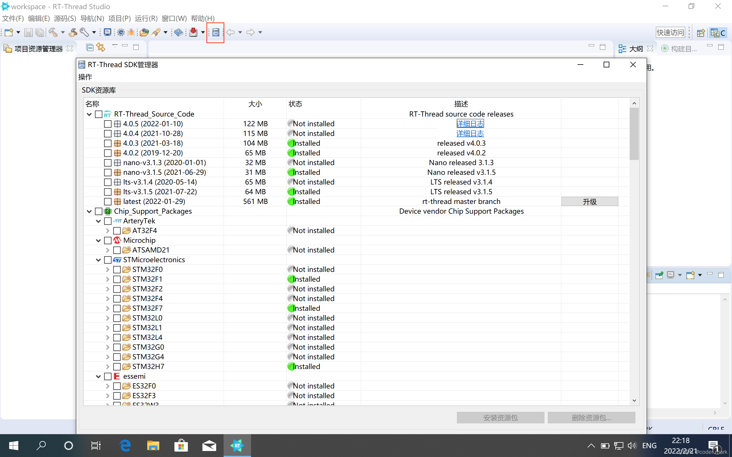 下载PICO开发包和RTThread源码(选中后,点击安装资源包),如下图