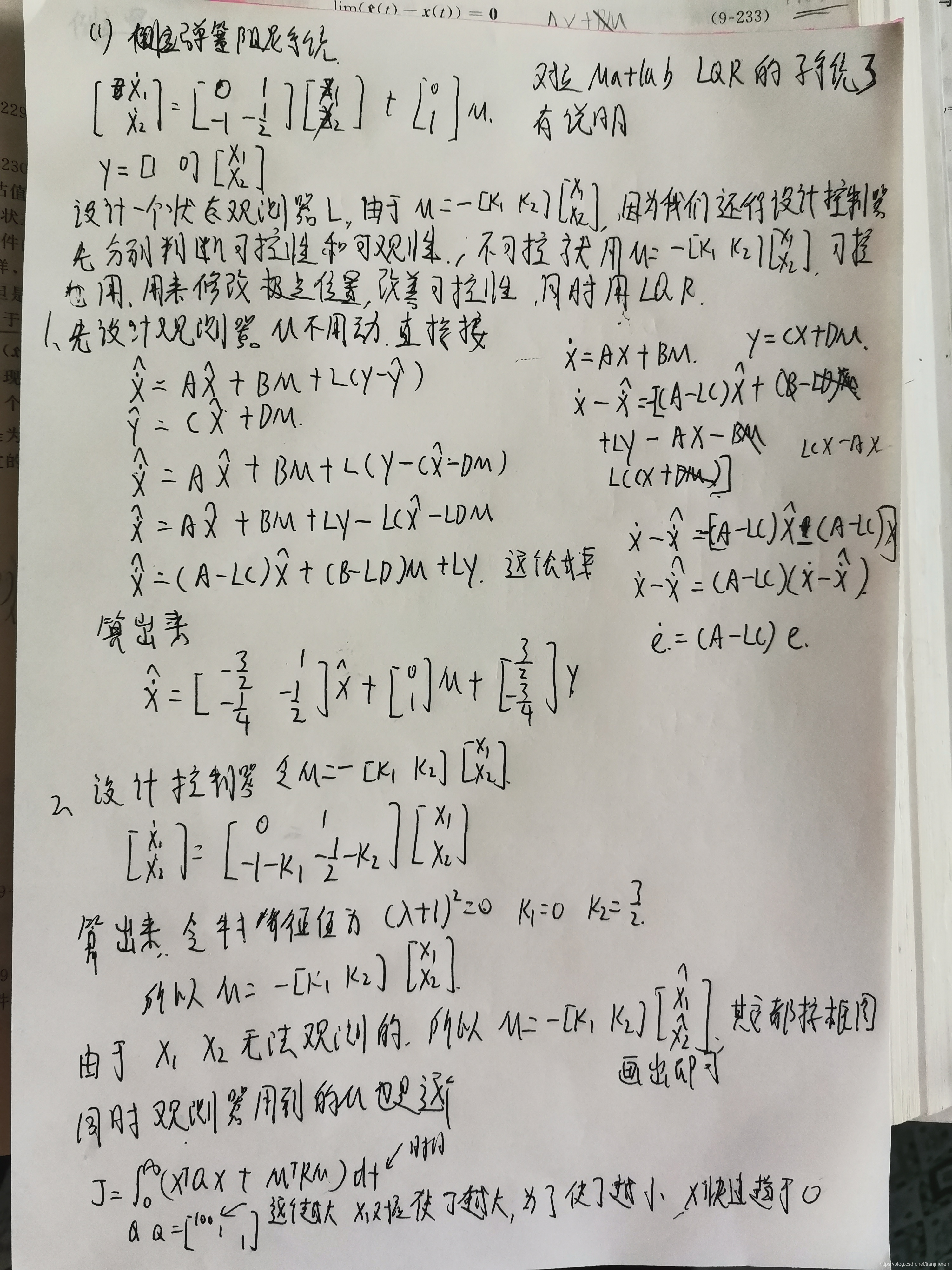 本文主要是介绍学习下控制 LQR加上观测器,希望对大家解决编程问题提供一定的参考价值,需要的开发者们随着小编来一起学习吧!