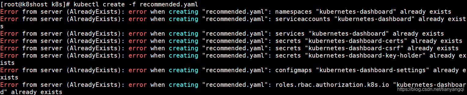 安装dashboard,请使用kubectl create命令来安装,通过apply命令无法成功安装,如果是发现一堆提示信息,可以使用kubectl delete来清除一下。
