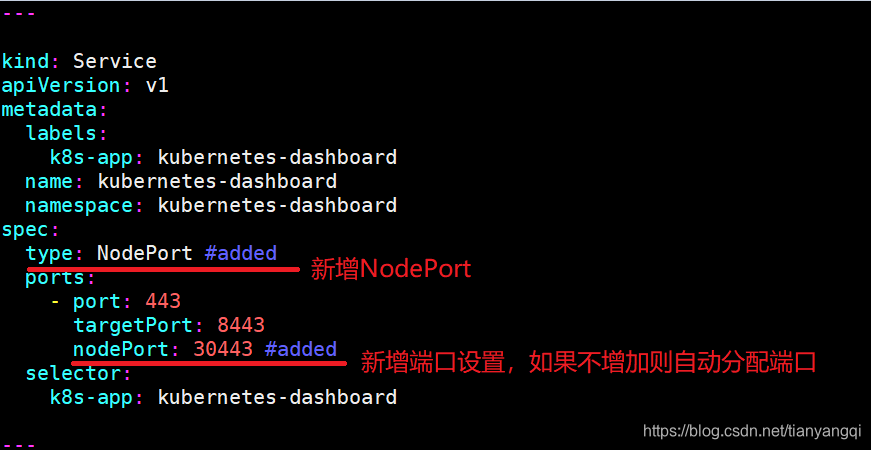 然后使用kubectl delete命令清除刚才创建的dashboard资源后,再用kubectl create命令创建,否则会有错误提示,某某资源已存在。创建成功后,再次查看service对外暴露的信息。