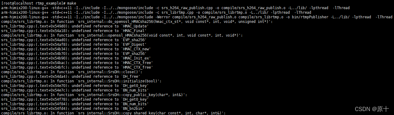 为了编译方便,我将srs_h264_raw_publish.c 修改为了cpp,只要修改几处goto就可以。编译依赖库libcrypto.so,所以如果出现这些错误时需要编译安装libcrypto.so库: