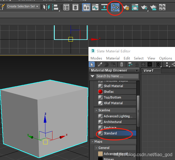 按下M键打开材质编辑器,位置如图所示,拖动一个标准色过去:
