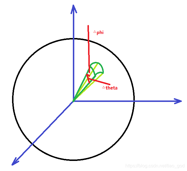 要生成朝向 (θ,phi) 的单位矢量方向,我们将其转换为笛卡尔坐标: