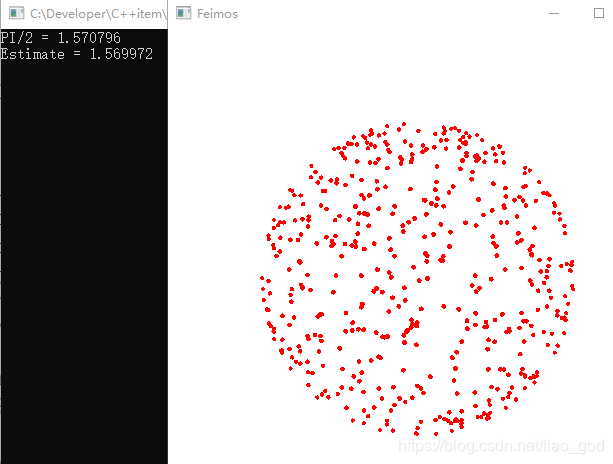 double sum1 = 0.0;double sum2 = 0.0;for (int i = 0;i < N;i++) {double r1 = myRandom();double r2 = myRandom();//float x = cos(2 * M_PI*r1) * 2 * sqrt(r2*(1 - r2));//float y = sin(2 * M_PI*r1) * 2 * sqrt(r2*(1 - r2));//float z = 1 - 2 * r2;//p(directions) = cos(theta) / Pidouble x = cos(2 * M_PI*r1) * 2 * sqrt(r2);double y = sin(2 * M_PI*r1) * 2 * sqrt(r2);double z = sqrt(1 - r2);sum1 += (z*z*z) / (z / (M_PI));// p(direction) = 1/(2*Pi)x = cos(2 * M_PI * r1) * 2 * sqrt(r2 * (1 - r2));y = sin(2 * M_PI * r1) * 2 * sqrt(r2 * (1 - r2));z = 1 - r2;sum2 += (z*z*z) / (1.0 / (2.0*M_PI));myRandomPoint[i].e[0] = x;myRandomPoint[i].e[1] = y;myRandomPoint[i].e[2] = z;}printf("PI/2 = %lf\n",M_PI/2);printf("Estimate = %lf\n", sum1/N);printf("Difference = %lf\n",(sum1/N-M_PI/2));printf("PI/2 = %lf\n", M_PI / 2);printf("Estimate = %lf\n", sum2 / N);printf("Difference = %lf\n", (sum2 / N - M_PI / 2));