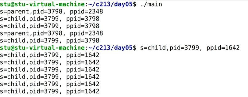 getpid()获取自己(子进程)的id,getppid()获取父进程的id。