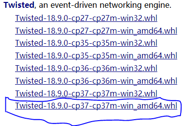 因为我的是3.7.2,所以我选择cp37,后面是AMD64,所以我选择amd64.whl