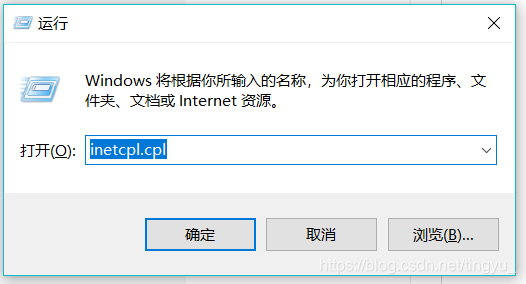 1.按住电脑的windows+R键,在弹出的框中输入inetcpl.cpl,点击确定